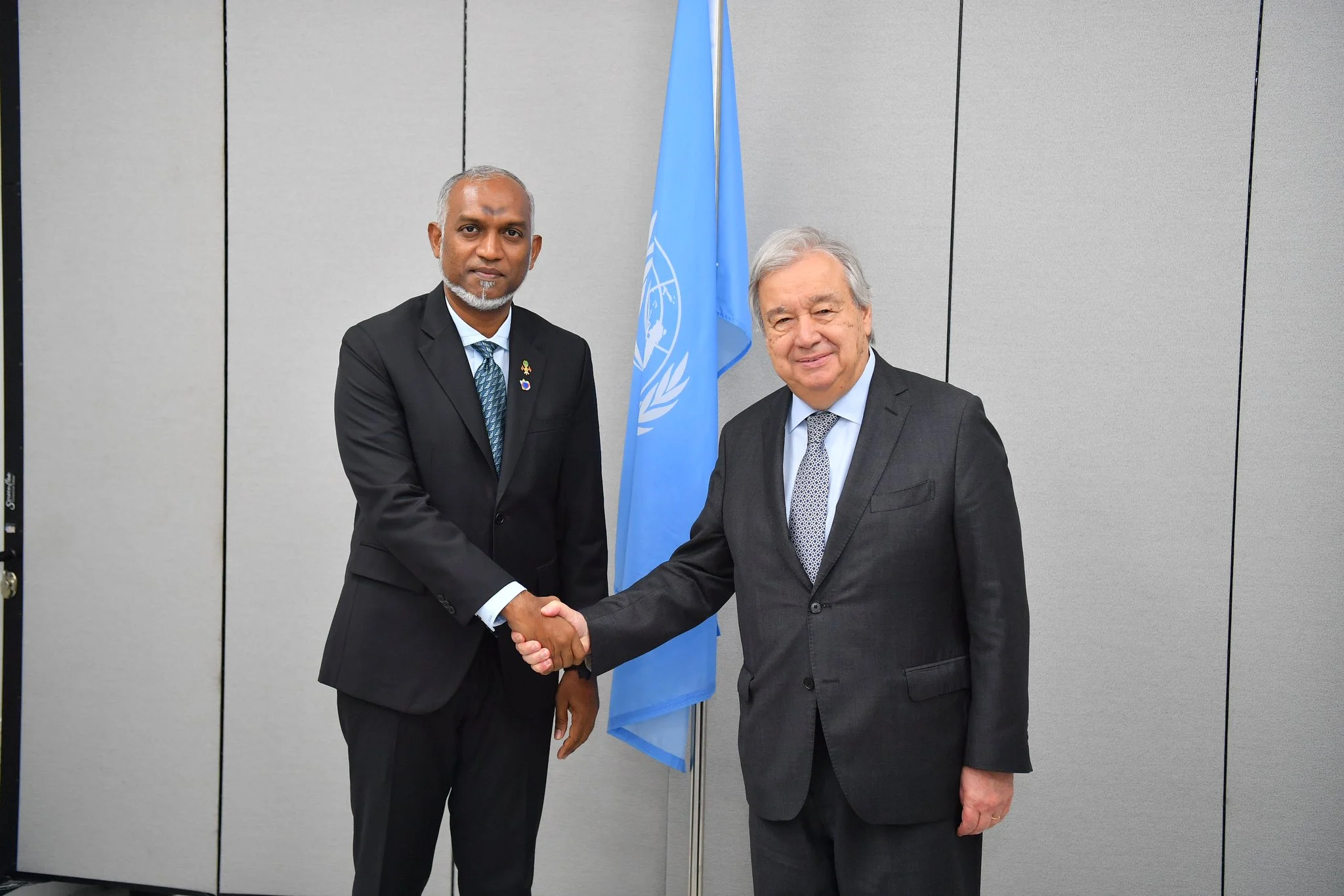 ރައީސުލްޖުމްހޫރިއްޔާ ޑރ. މުހައްމަދު މުއިއްޒު، އދގެ ސެކްރެޓަރީ ޖެނެރަލް އެންޓޯނިއޯ ގުޓަރޭޒް އާ ބައްދަލު ކުރައްވައި ރާއްޖެއަށް ކުރިމަތިވެފައިވާ ތަރައްގީގެ އެކިއެކި ގޮންޖެހުންތަކާއި ގުޅޭ ގޮތުން މަޝްވަރާ ކުރައްވައިފިއެވެ.