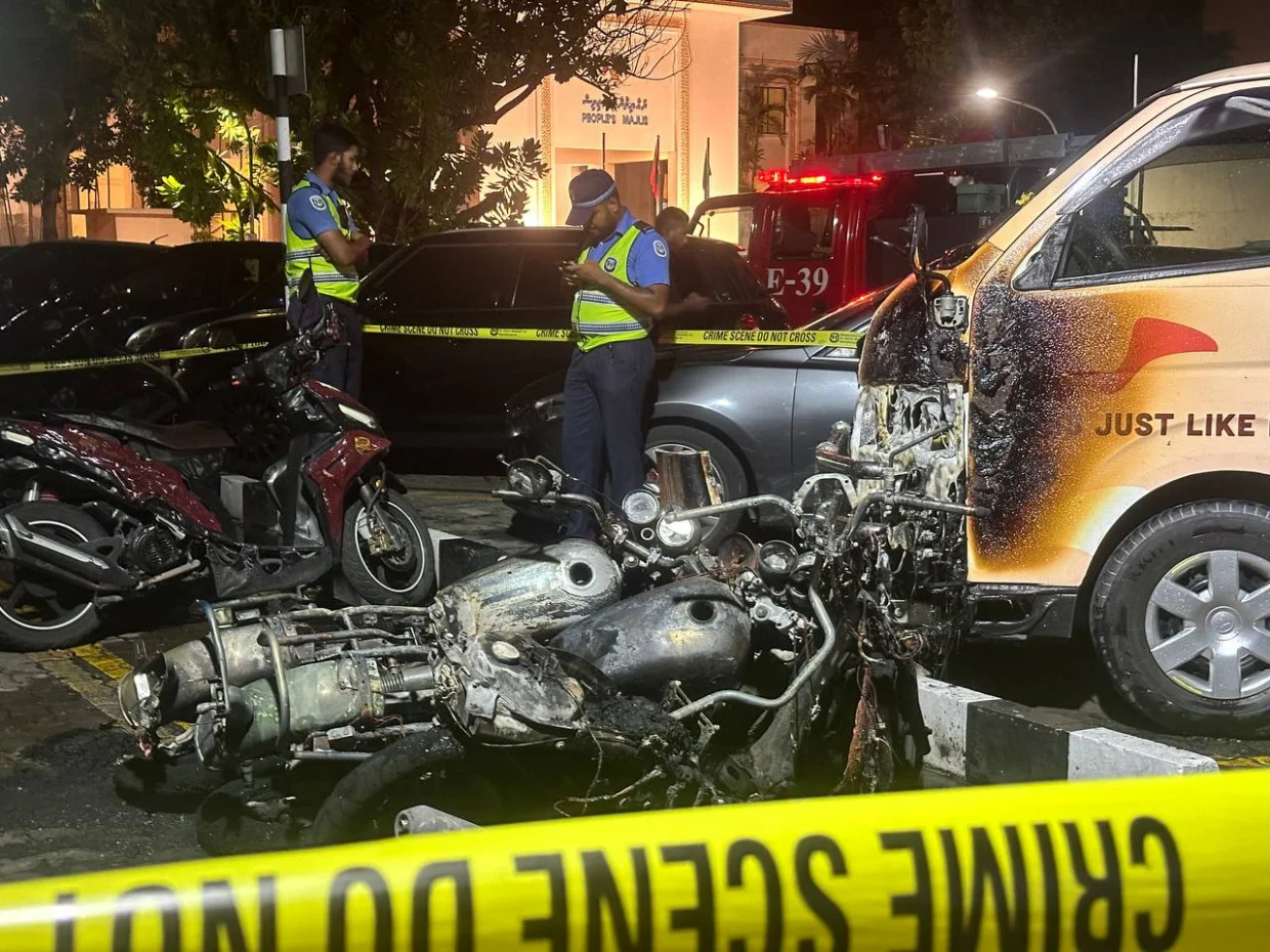 ފުލުހުން ބުނެފައިވާ ގޮތުގައި ރޭ 3:03 ހާއިރު މެދުޒިޔާރަތް މަގު ހޮޓެލް ޖެން ކައިރީގައި ޕާކުކޮށްފައި ހުރި ސައިކަލުތަކެއްގައި އަލިފާން ރޯކޮށްލައިފައިވާ ކަމުގެ މައުލޫމާތު ލިބުން ކަމަށެވެ.