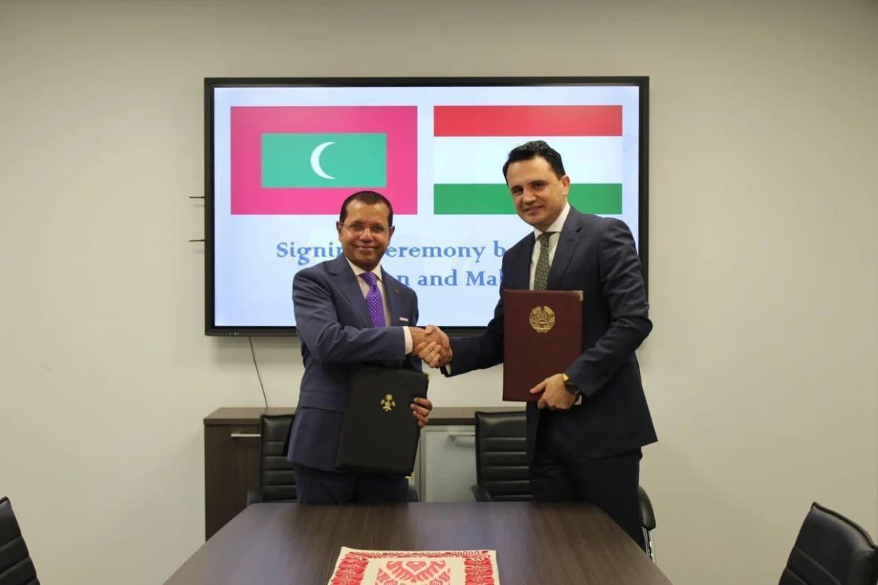 އެގޮތަށް ހަމަޖައްސައި އެކަމުގެ އެއްބަސްވުމުގައި ދެ ޤައުމުގެ ފަރާތުން ސޮއިކޮށްފައި ވާއިރު، އެ އެއްބަސްވުމުގައި  ތަޖިކިސްތާނުގެ ފަރާތުން ސޮއިކޮށްފައިވަނީ އެ ގައުމުން އދ. އަށް ކަނޑައަޅުއްވާފައި ހުންނަވާ ދާއިމީ މަންދޫބު ހިކްމަތު ޖޮނިބެކް އިސްމޮއިލެވެ. އަދި ރާއްޖޭގެ ފަރާތުން މި އެއްބަސްވުމުގައި ސޮއިކުރެއްވީ އދ. އަށް ކަނޑައަޅުއްވާފައި ހުންނަވާ ރާއްޖޭގެ ދާއިމީ މަންދޫބު ޑރ. އަލީ ނަސީރު މުހައްމަދެވެ.