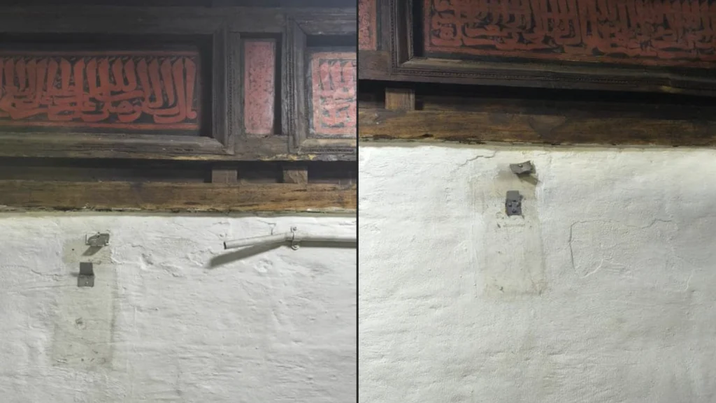 ދަރުމަވަންތަ މިސްކިތުގެ ފާރުގައި ހަރުކޮށްފައިހުރި ދެ ފަންކާ ވަގަށް ނަގައިފި